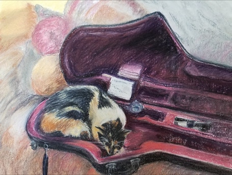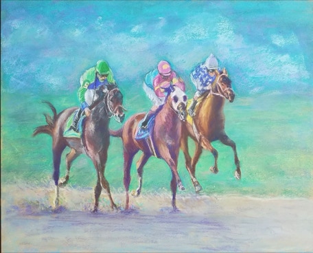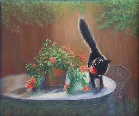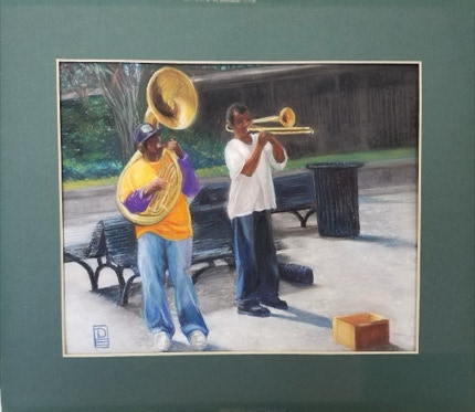 After a brief return to Chattanooga, she moved to New Orleans. Here she felt at last she had found home. Her artistic training began with a French Quarter workshop taught by Alan Flattmann, Pastel Society of America Master Pastelist. In the years that followed, Delle studied watercolor and pastel with numerous nationally known artists and at the New Orleans Academy of Fine Art. Her work during this time focused on animal portraits, especially those of cats and their people. In 2003, she began studying with William Arthur Herring, a colorist from Horizon, Texas in Master Courses at Cloudcroft, New Mexico. The courses focused on composition, drawing and the use of color. These courses greatly influenced her style because Herring encouraged her to use open color rather than the more traditional local color. Open color is chosen from emotion rather than what is actually seen.